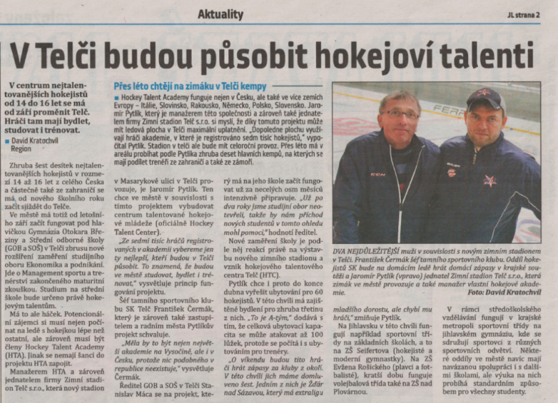 Po dlouhých 30 letech se historická Telč dočkala zbrusu nového a zároveň krytého zimního stadionu. Ten je v režimu předčasného užívání a slavnostní otevření má proběhnout na přelomu měsíce ledna a února. S kolaudací se počítá v průběhu jarních měsíců. Více informací můžete nalézt v článku Jihlavských listů ze dne 12.1.2016 - viz níže.